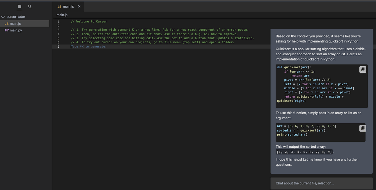 My go-to’s are CTRL+K for in-line edits, and CTRL+L for describing my app’s specification and building a development strategy with AI in tow.