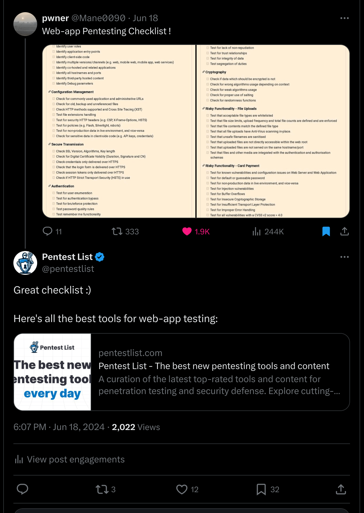 If you want to see other examples, visit Pentest List on X and go to the ‘Replies’ tab.